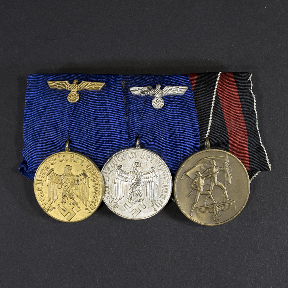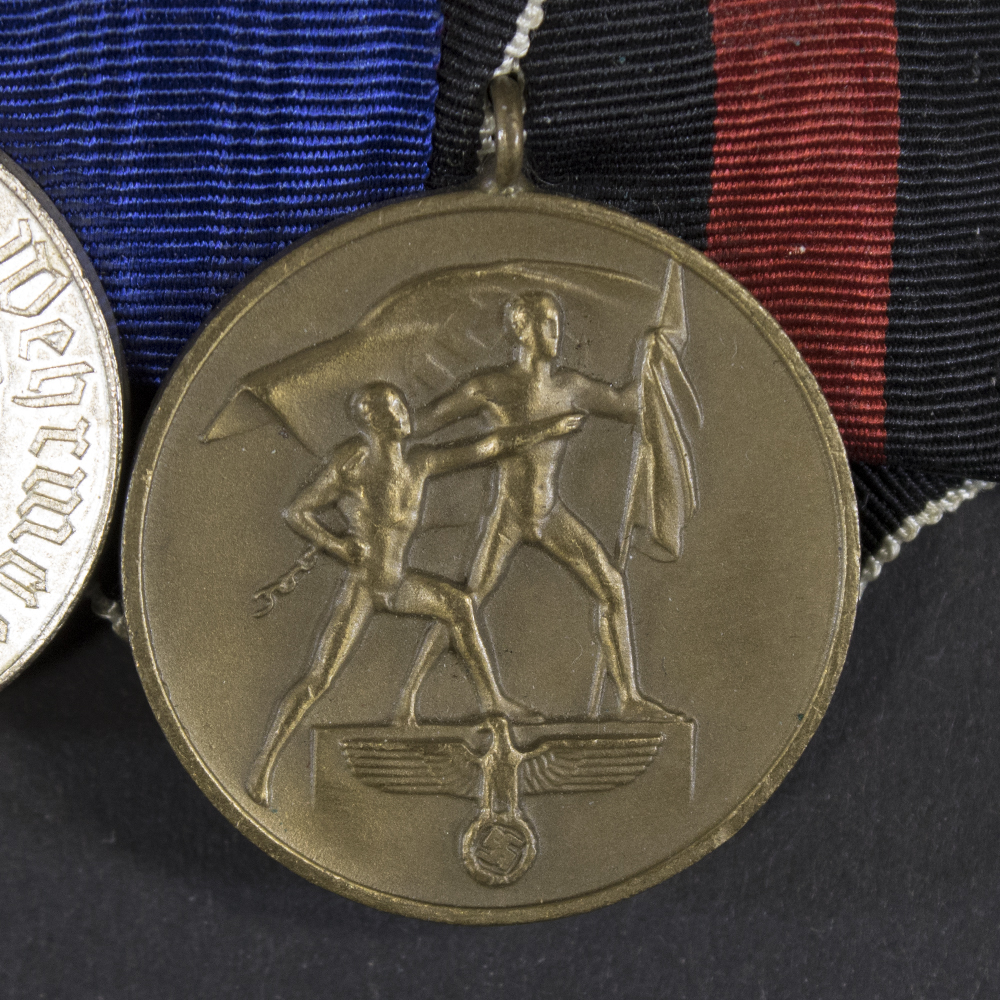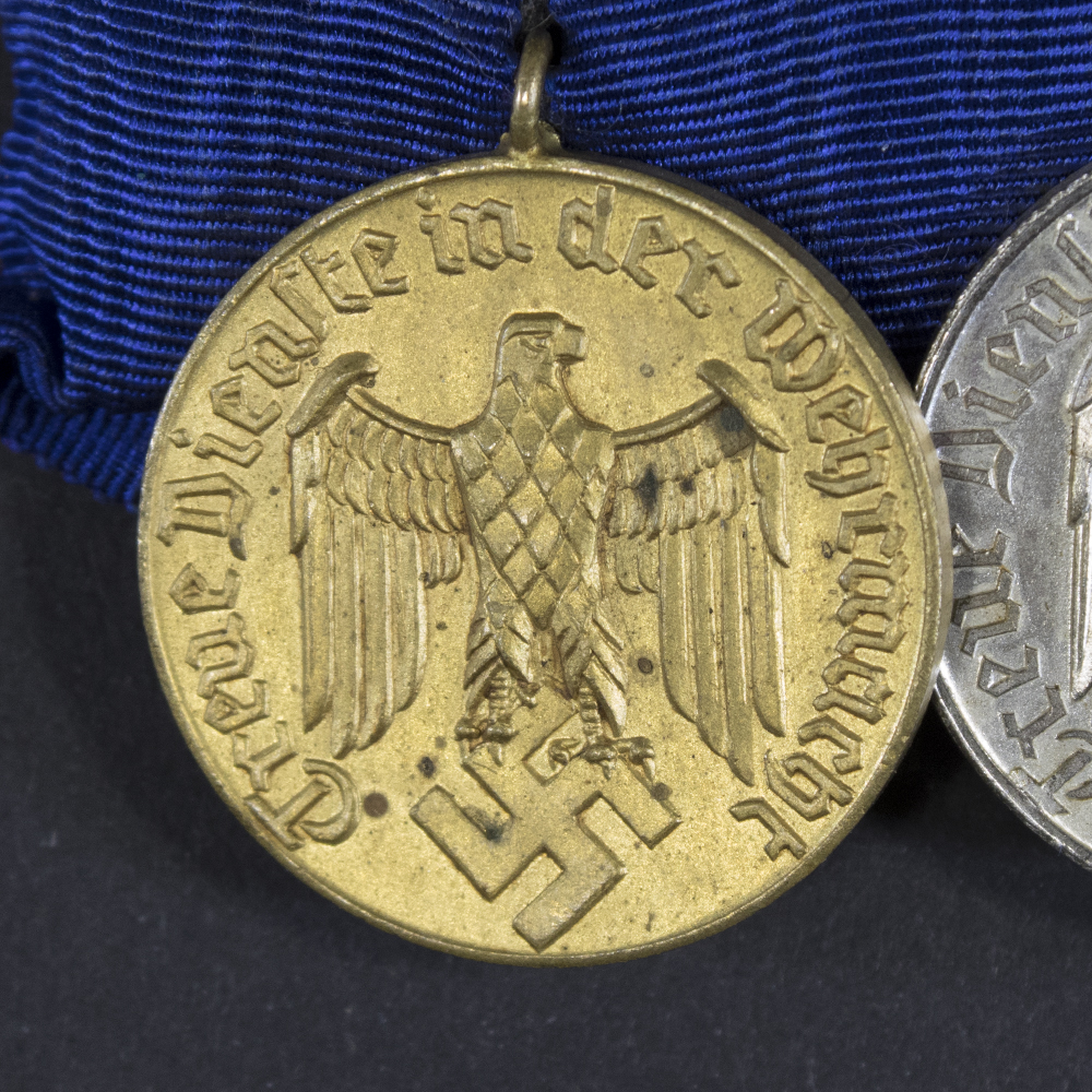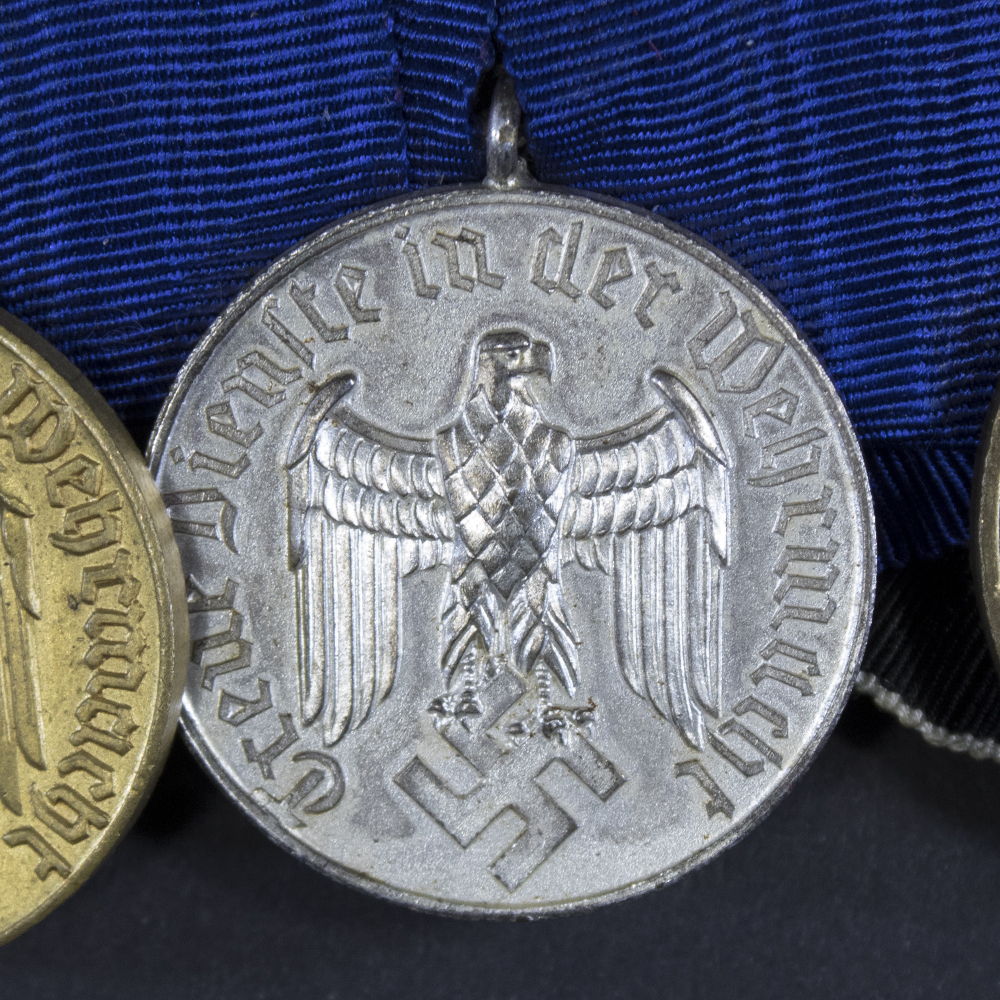 Nice, and still in a very good condition 4 and 12 years service in the wehrmacht and Sudeten Occupation medal bar, inclusing the the ribbon bar.