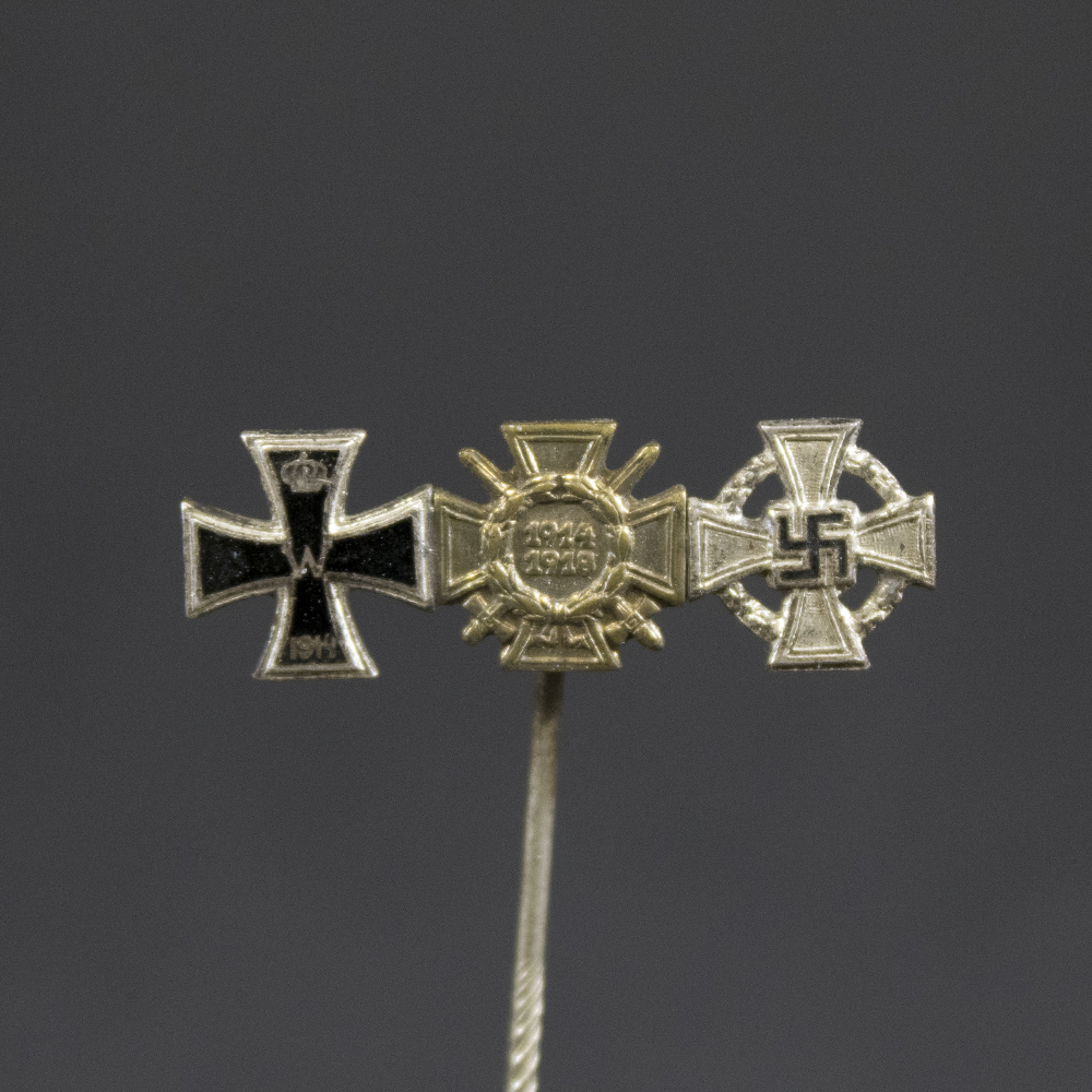 Nice and in used condition 3-piece stick pin (Iron Cross 2nd class World War 1 / Frontkämpfer / 25 years faithful service)