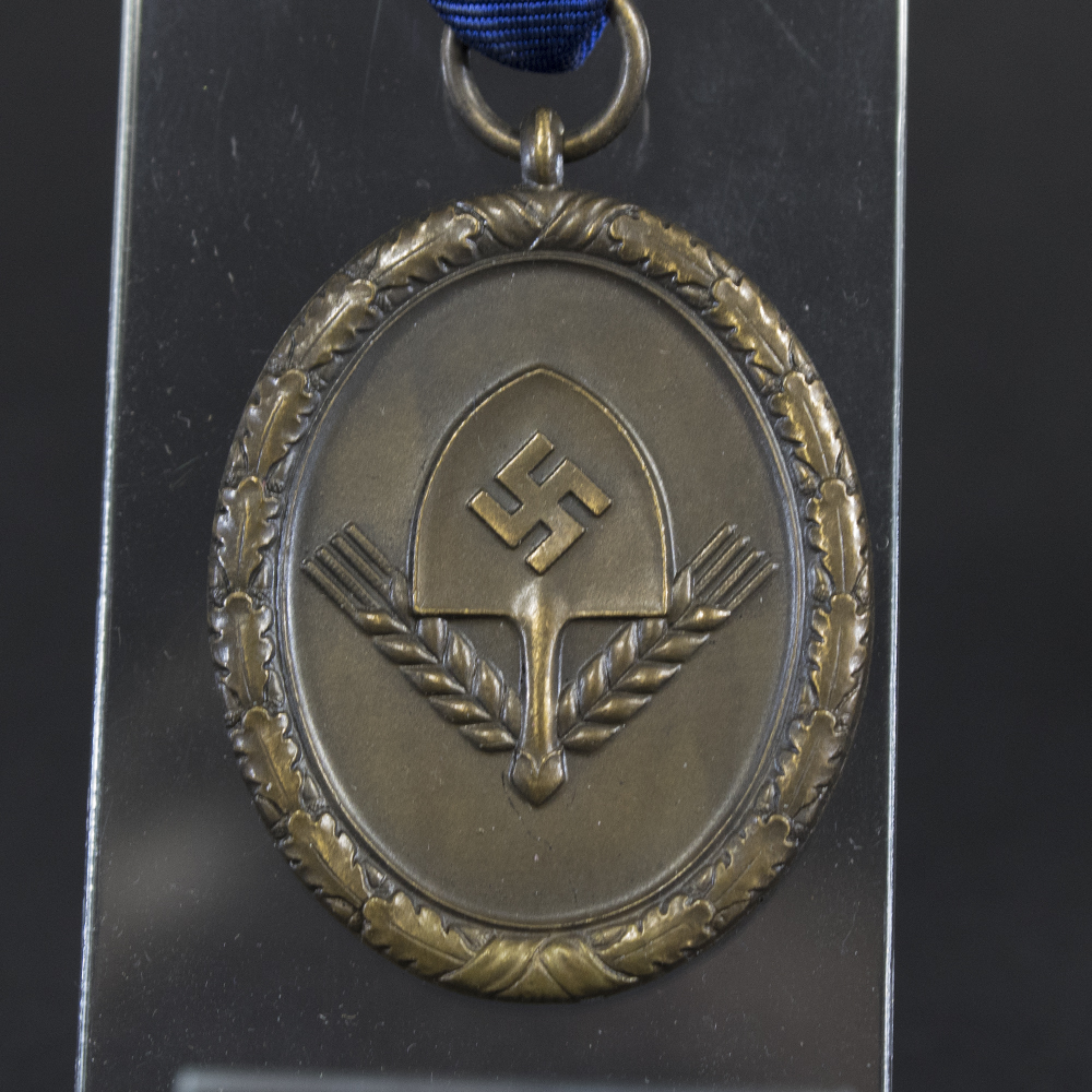 From June 1935, men aged 18 to 25 were required to serve in the RAD for six months before beginning their military service. During World War II, compulsory service extended to young women, and the RAD evolved into an auxiliary formation supporting the Wehrmacht, assisting in construction projects, fortifications, and logistical operations.