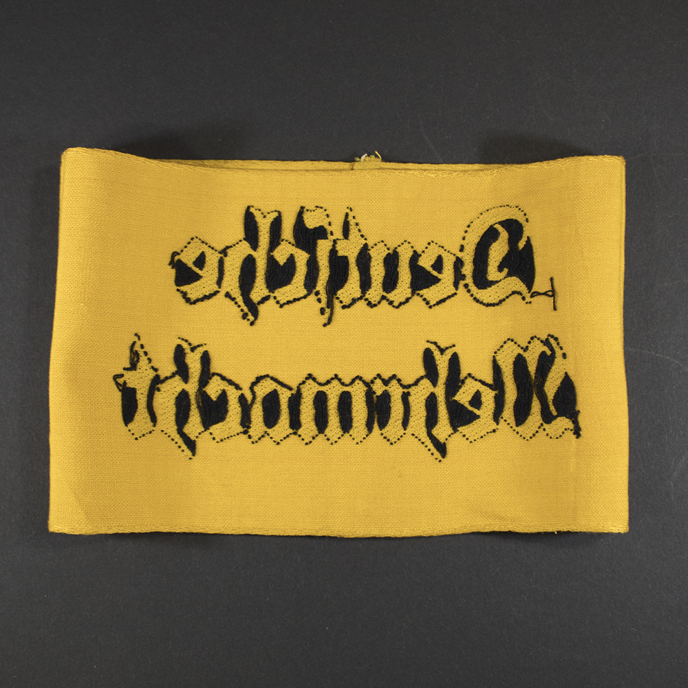 This authentic WWII German “Deutsche Wehrmacht” armband remains in very good condition. The Army Mobilization Order of March 12, 1937 introduced these armbands to identify individuals performing specific duties for the German Armed Forces. Personnel wore them on the upper left sleeve while carrying out assigned functions. This armband served non-uniformed personnel attached to the Wehrmacht. On October 1, 1941, new regulations limited its use to non-combatant, non-uniformed personnel. Collectors value this piece for its historical significance and connection to WWII militaria.