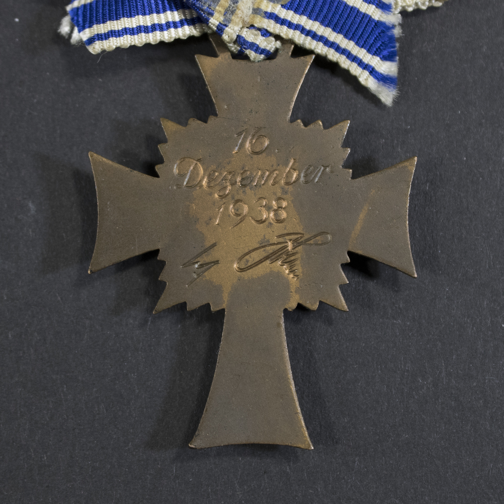 The Mother’s Cross (Ehrenkreuz der Deutschen Mutter) is a state decoration that Adolf Hitler introduced on December 16, 1938. The award formed part of a broader Nazi strategy to reshape German society according to fascist ideals, focusing on population growth, racial purity, and strict gender roles. Although it honored motherhood, the decoration reinforced the regime’s racial and ideological goals.