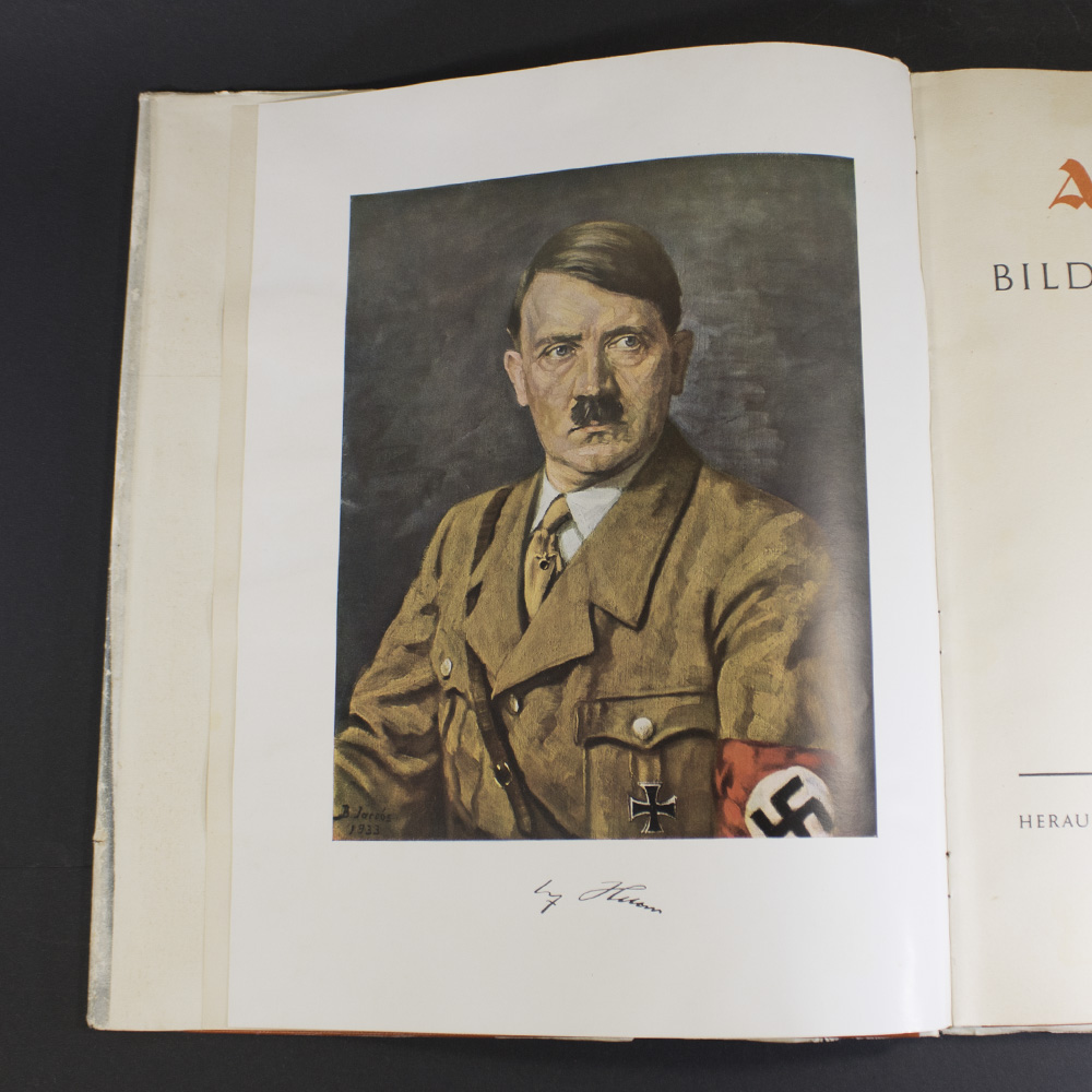During the Third Reich, cigarette companies produced collectible card albums as propaganda. These albums featured Adolf Hitler and other Nazi leaders. Each album included text and space for cigarette cards that buyers collected separately. The cards illustrated biographies of Nazi figures and promoted the party’s image and history. This campaign targeted the public, especially the youth.