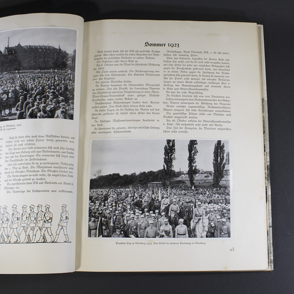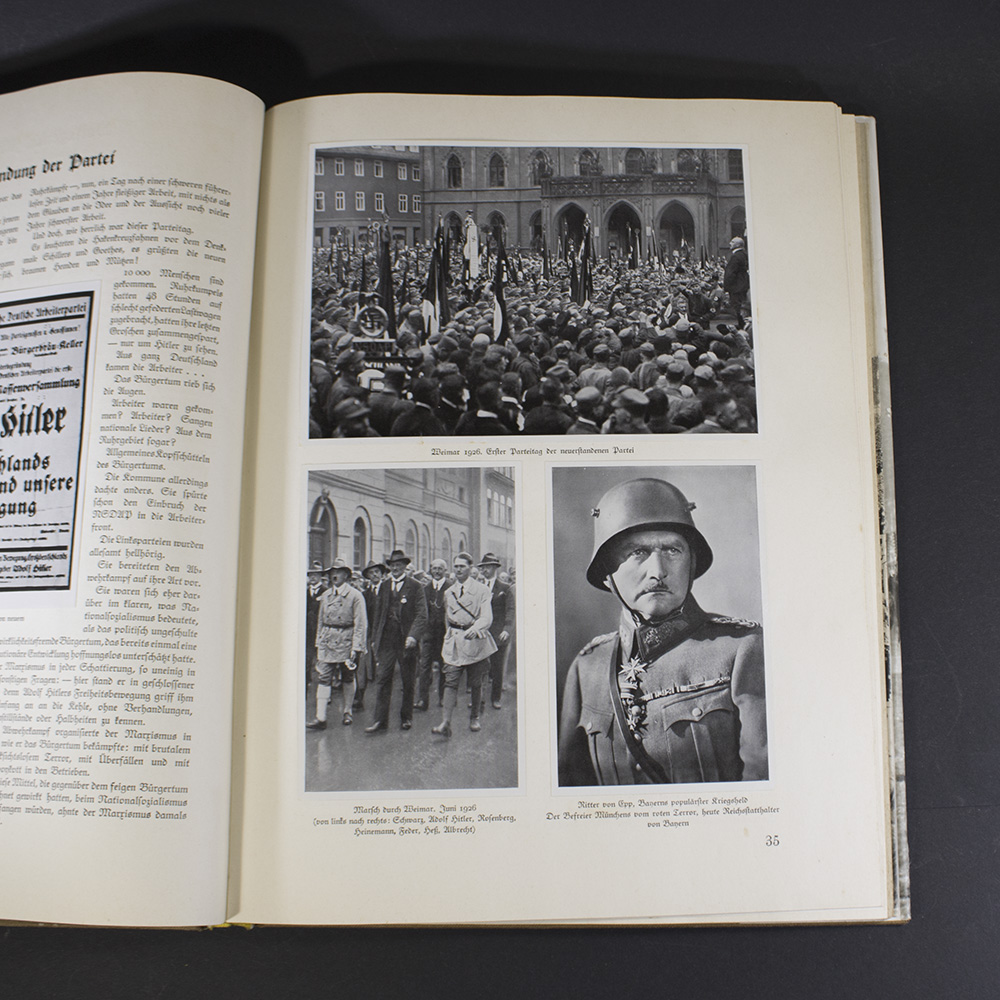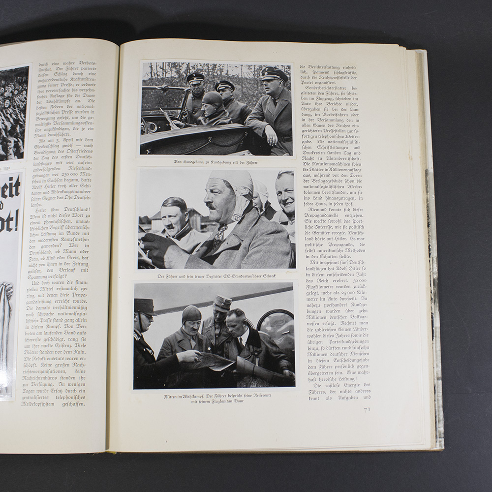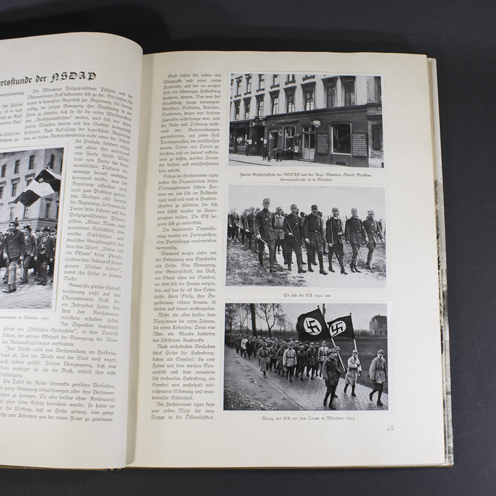 During the Third Reich, cigarette companies produced collectible card albums as propaganda. These albums featured Adolf Hitler and other Nazi leaders. Each album included text and space for cigarette cards that buyers collected separately. The cards illustrated biographies of Nazi figures and promoted the party’s image and history. This campaign targeted the public, especially the youth.