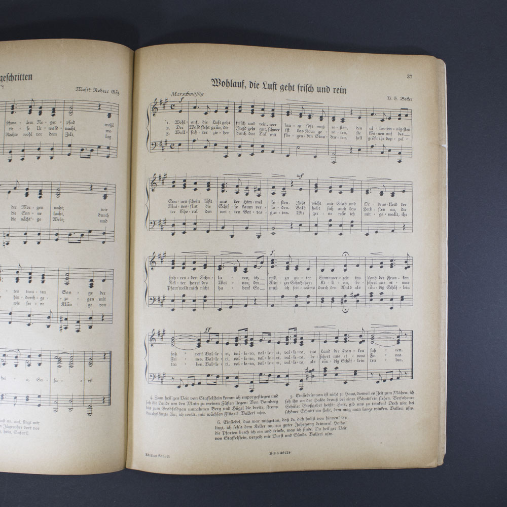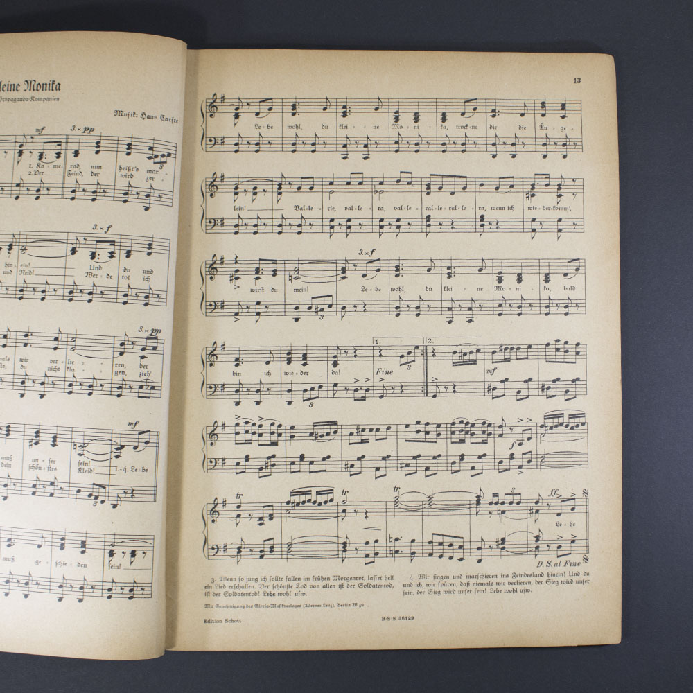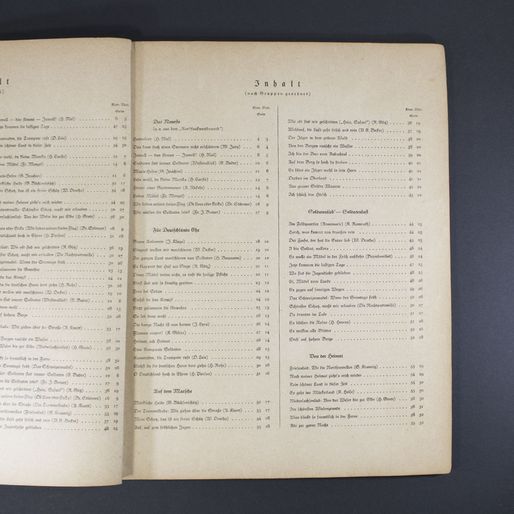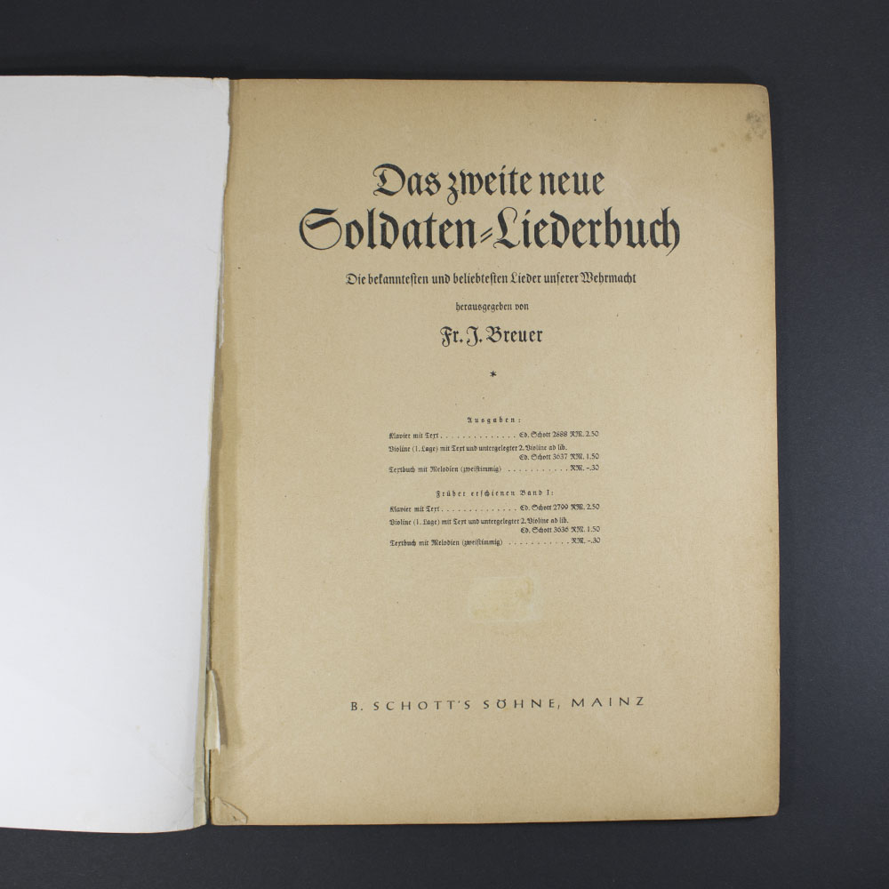Das Neue Soldaten Liederbuch” is an A4-sized book – used for piano (32×24 cm) containing the lyrics and sheet music of the most famous marches and military songs of the Wehrmacht. This historic German WWII songbook is in good condition