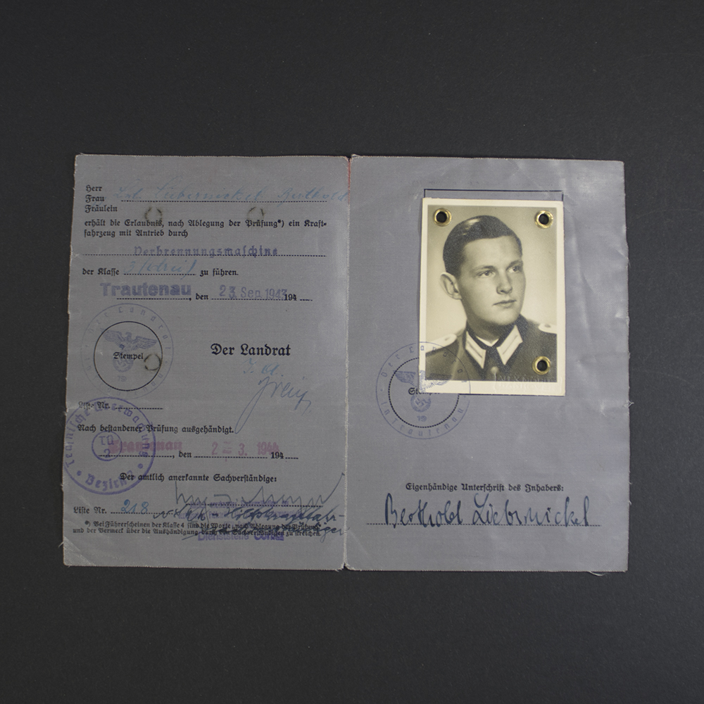 Nice, in used condition, Führerschein (drivers license) with a nice picture of a soldier in uniform.