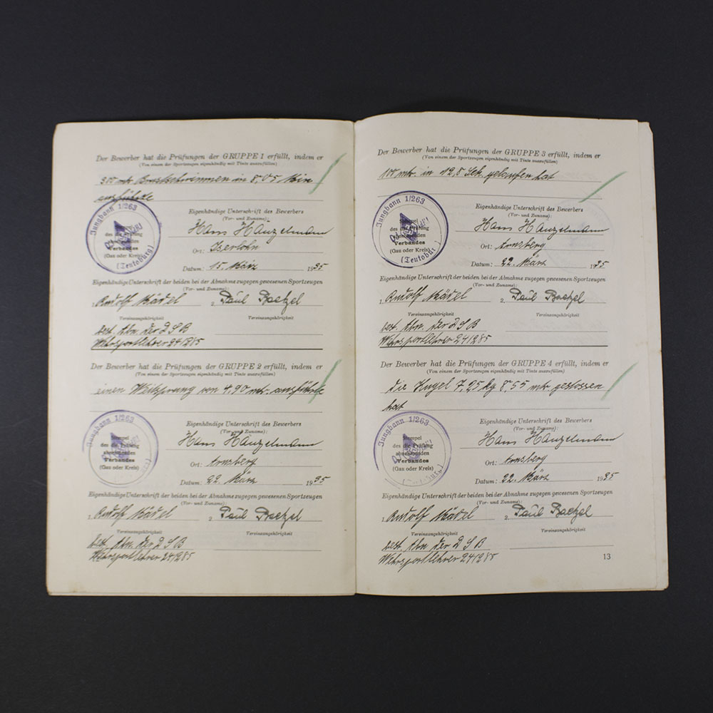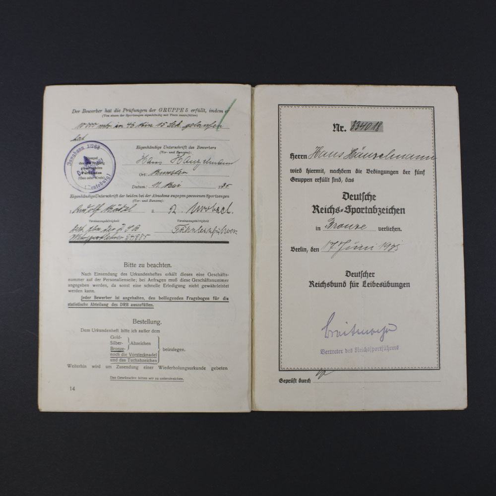 Nice, and still in a fairly good condition DRL (Deutsches Reich Abzeichen für Leibesübungen) sports award book for the bronze badge.
