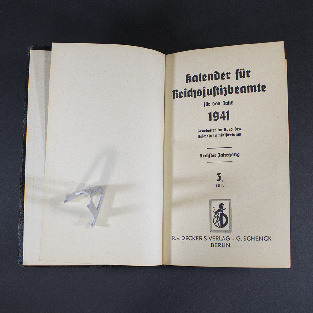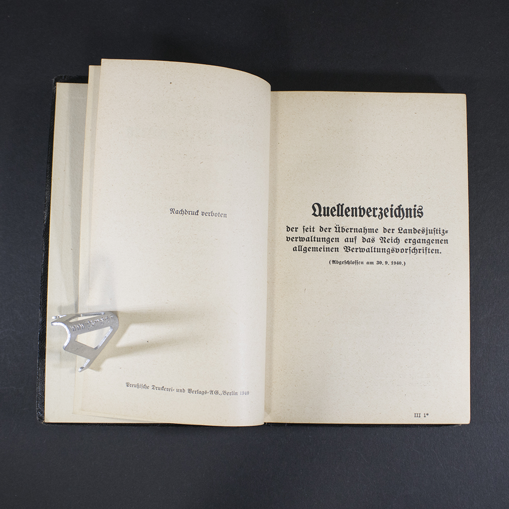 Very nice and in good condition German law book, called “kalender für reichs justizbeamte 1941 – 3. Teil” or translated to English “Calendar for Reich Judicial Officials 1941 – Part 3”