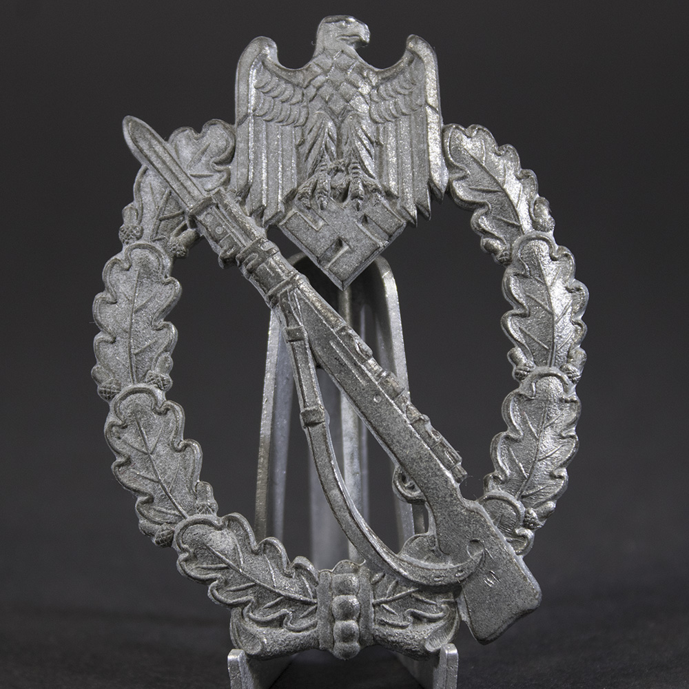 The Infantry Assault Badge (German: Infanterie-Sturmabzeichen) was a German military award presented to Wehrmacht Heer and Waffen-SS soldiers during World War II. Established on December 20, 1939, by Generalfeldmarschall Walther von Brauchitsch, the badge recognized infantry and Gebirgsjäger (mountain infantry) troops who took part in at least three front-line assaults with light infantry weapons after January 1, 1940. The award also applied to counter-offensive actions, highlighting soldiers’ active participation in close combat operations on the front lines.