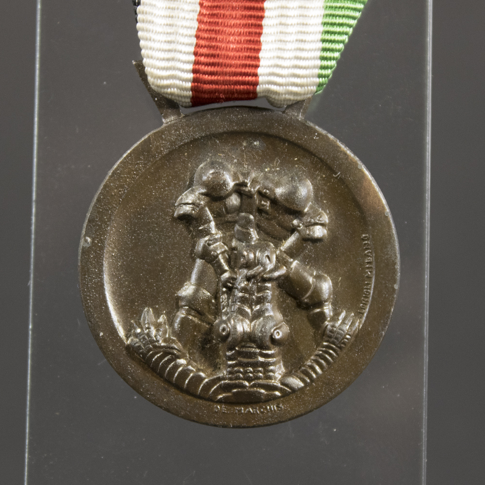 The Kingdom of Italy introduced the Medaglia commemorativa della campagna italo-tedesca in Africa settentrionale—known in Germany as the Italian-German Campaign Medal—during World War II. Benito Mussolini established the medal in 1942 for soldiers who fought in the North African Campaign, creating two versions.