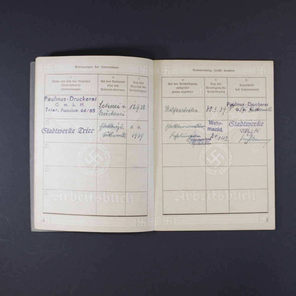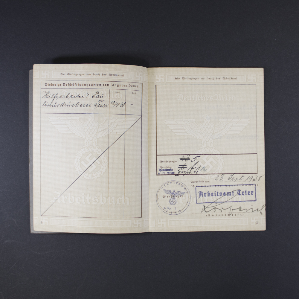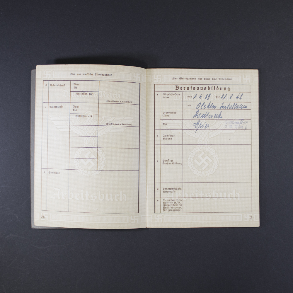 Very nice German labor book (Arbeitsbuch) for a German man, with an extra document as found together.