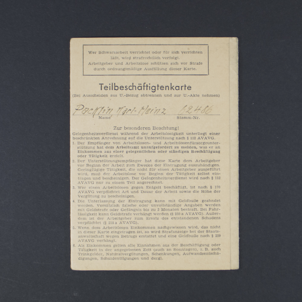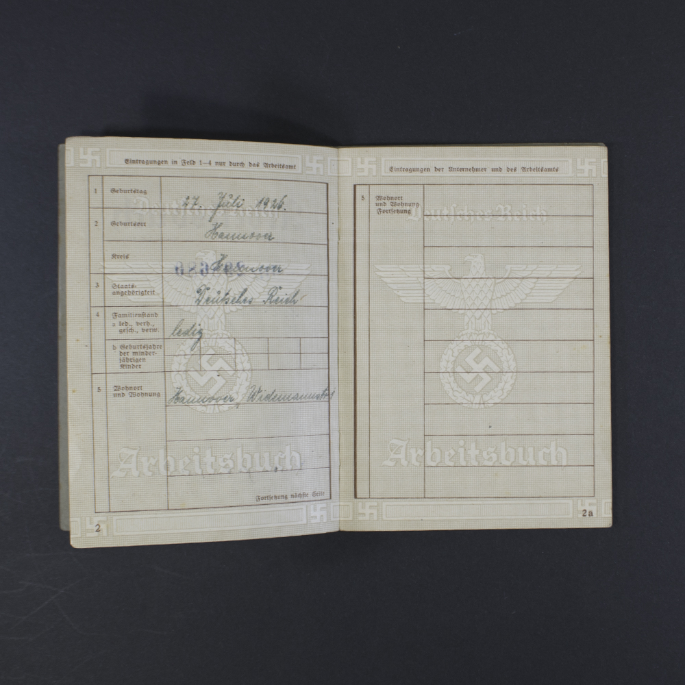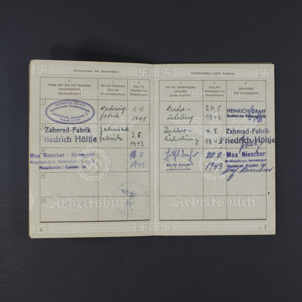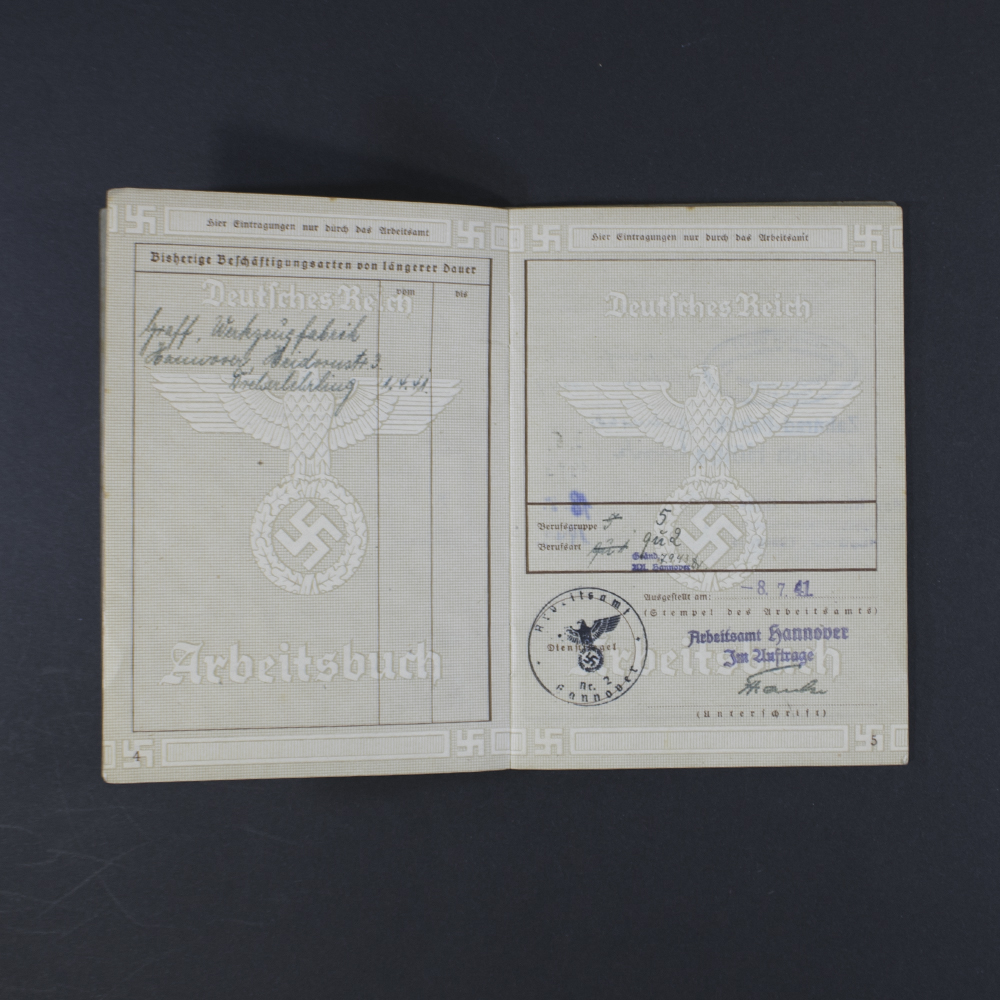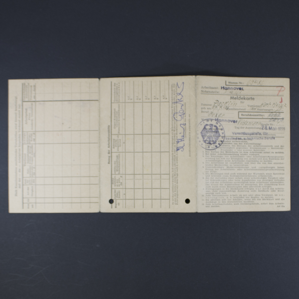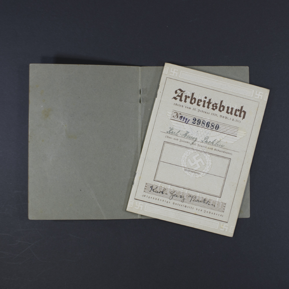 Very nice German labor book (Arbeitsbuch) for a German man, with an extra document as found together.