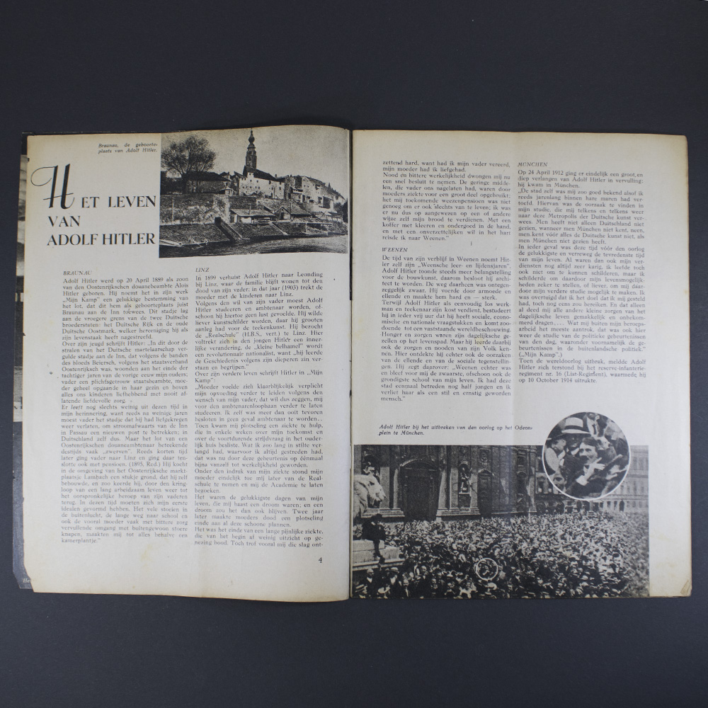 Adolf Hitler – His Life, His Work is a historical Dutch World War II magazine studied as source material on National Socialist propaganda, ideology, and imagery during the occupation. Suitable for researchers, archives, and educational purposes