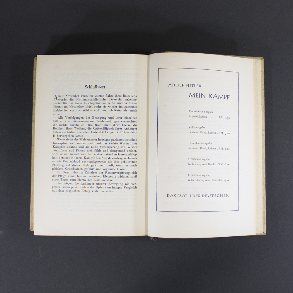 Mein Kampf (German for “My Struggle”) is a two-volume autobiographical and political manifesto written by Adolf Hitler, leader of the Nazi Party. Volume 1 was published in 1925, followed by Volume 2 in 1926. The book outlines Hitler’s ideology, political beliefs, and plans for Germany’s future. Emil Maurice initially edited the work, with Rudolf Hess later taking over.