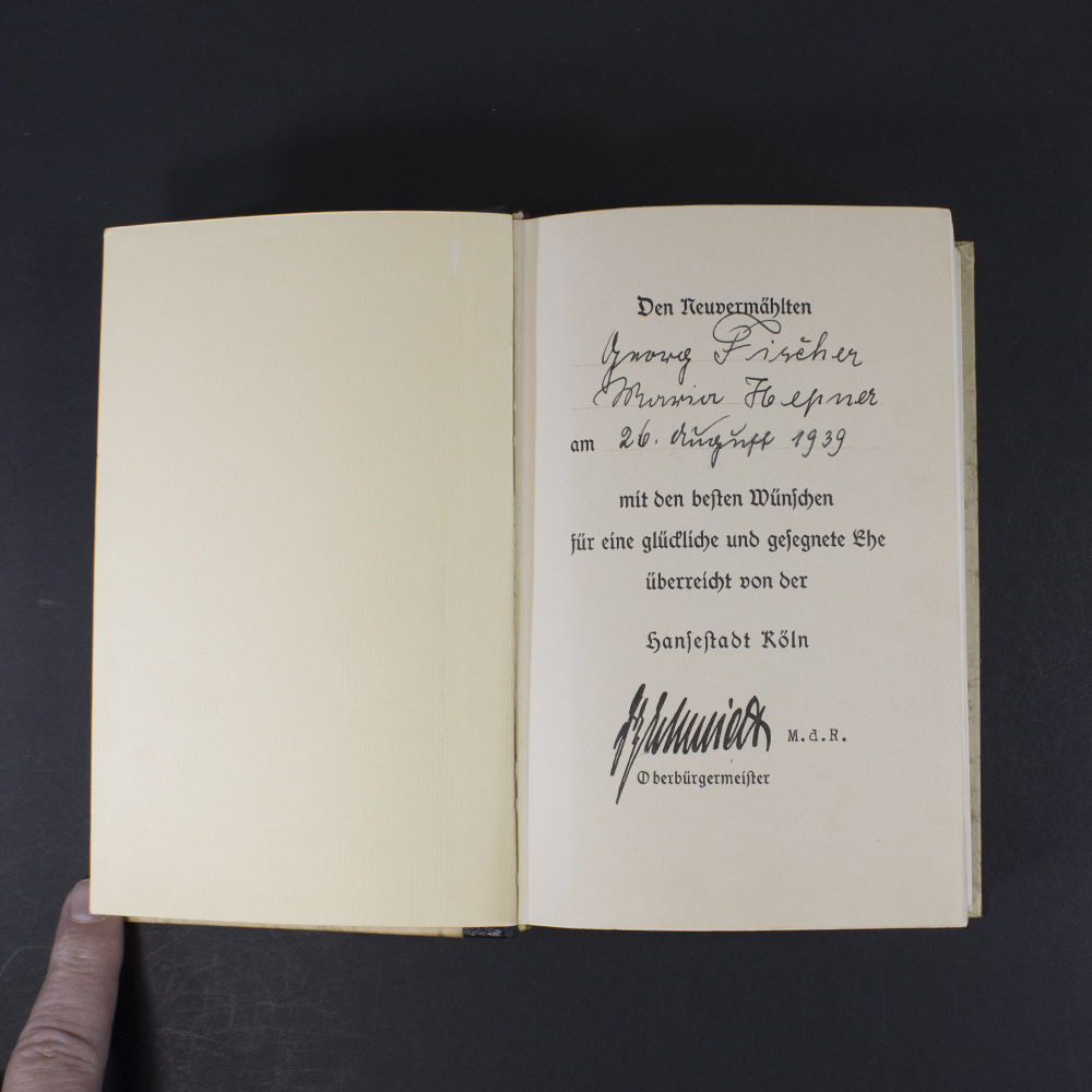 Nice and in good condition Mein Kampf wedding edition from 1939 fron the city of Cologne together with its original slip case. One side of the case has been repaired at some point but still looks very good.