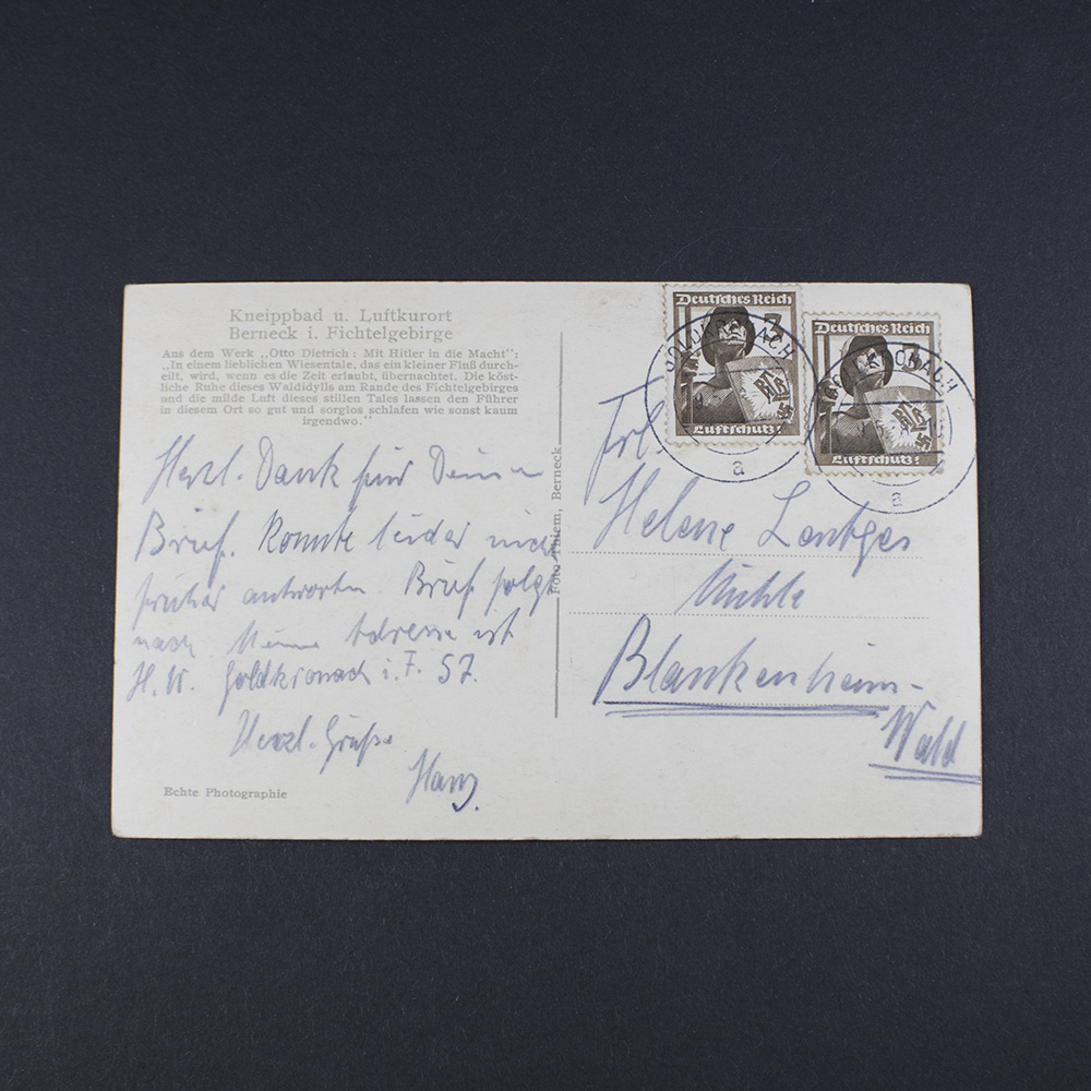 Postcard of Adolf Hitler at hotel Bube