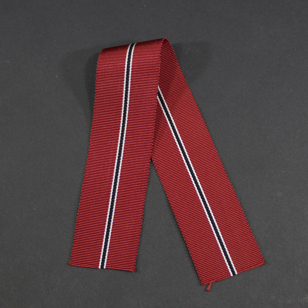 Nice and in unused condition ribbon for the Eastern Front medal. The ribbon is about 23cm in lenght. The Service ribbon featured a central white-black-white (white for snow, black for the fallen soldiers) stripe with red (for blood) either side.