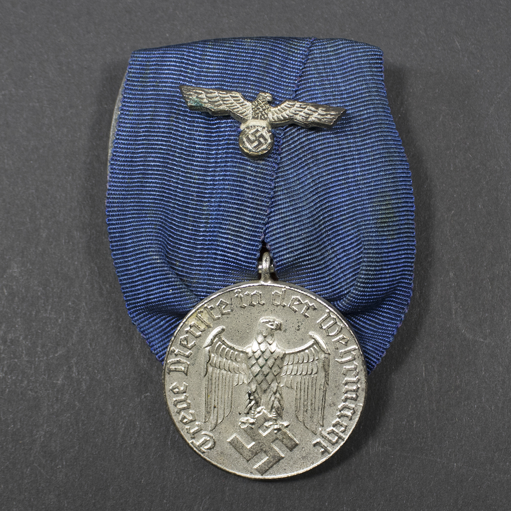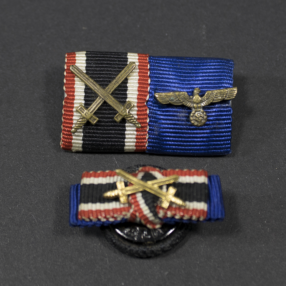Very nice medal set consisting of the 4 years’ service wehrmact & war merit cross with swords plus ribbon bar & button