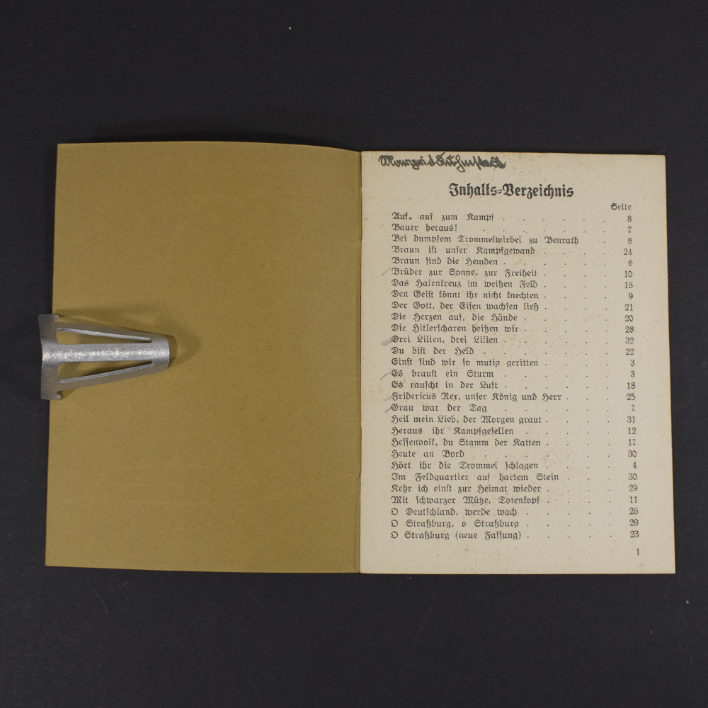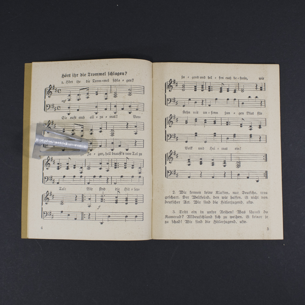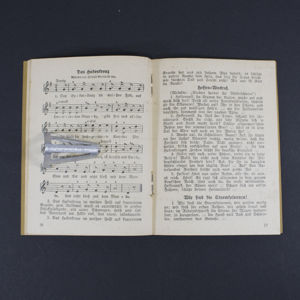This original WWII-era German songbook, “Für Freiheit und Vaterland” or in English “For freedom and fatherland”, is in very good condition and offers a rare glimpse into the musical culture of Nazi Germany. Published during the Third Reich, the book contains patriotic songs that reflect the regime’s propaganda and nationalistic themes.