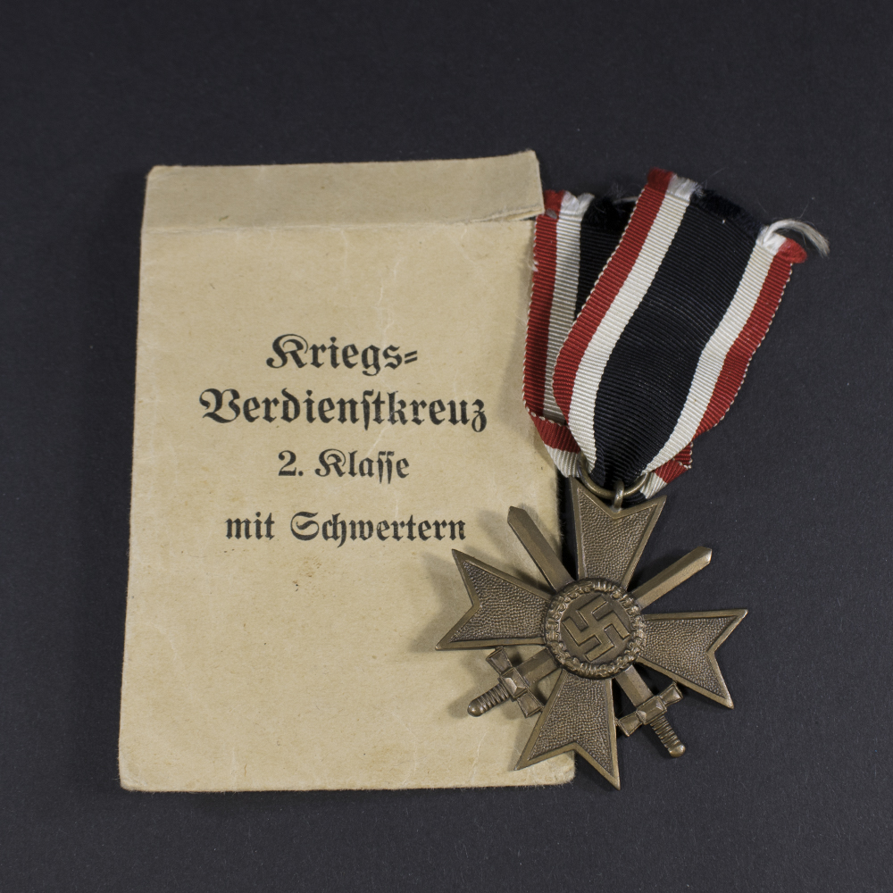 The War Merit Cross (KVK) was a decoration of the German Reich during World War II, awarded to both soldiers and civilians. Adolf Hitler established it by decree on October 18, 1939, in his role as Head of State.