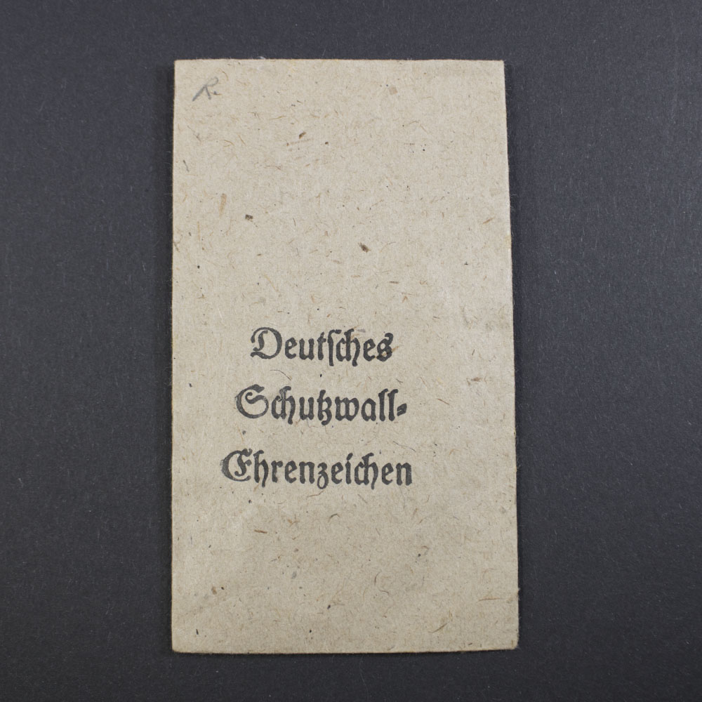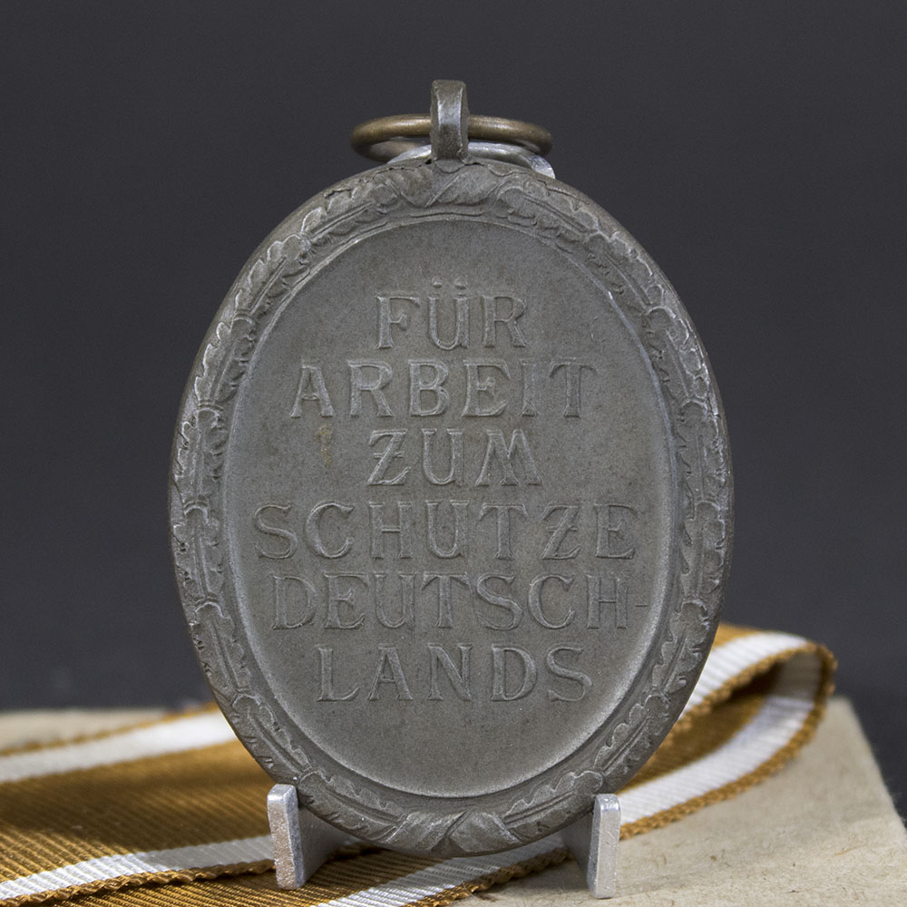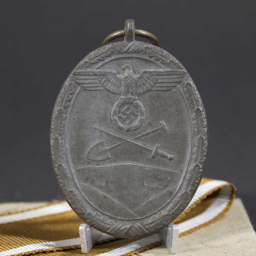 The West Wall Medal (German: Deutsches Schutzwall-Ehrenzeichen) was a military and civil decoration of Nazi Germany, instituted on 2 August 1939. It was originally awarded to individuals who planned, constructed, or contributed to the fortifications along Germany’s western borders, known as the Westwall or the Siegfried Line, between 15 June 1938 and 31 March 1939.
