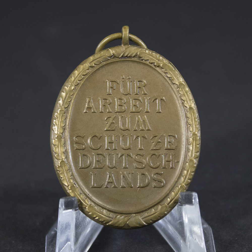 Nazi Germany introduced the West Wall Medal on 2 August 1939. The award recognized military and civilian contributors who helped build the Westwall, also known as the Siegfried Line, between 15 June 1938 and 31 March 1939.