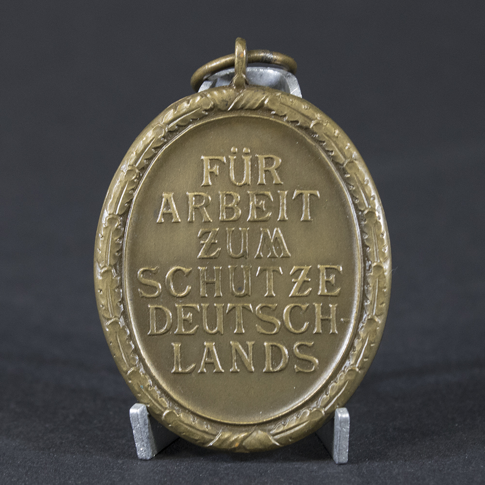Nazi Germany introduced the West Wall Medal on 2 August 1939. The award recognized military and civilian contributors who helped build the Westwall, also known as the Siegfried Line, between 15 June 1938 and 31 March 1939.
