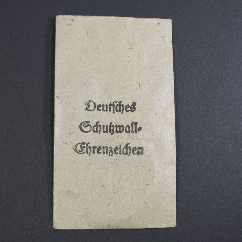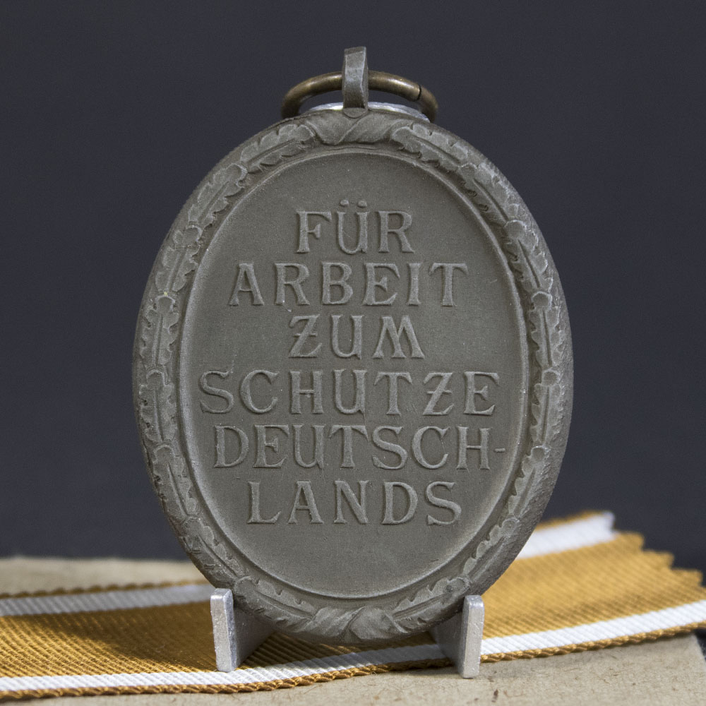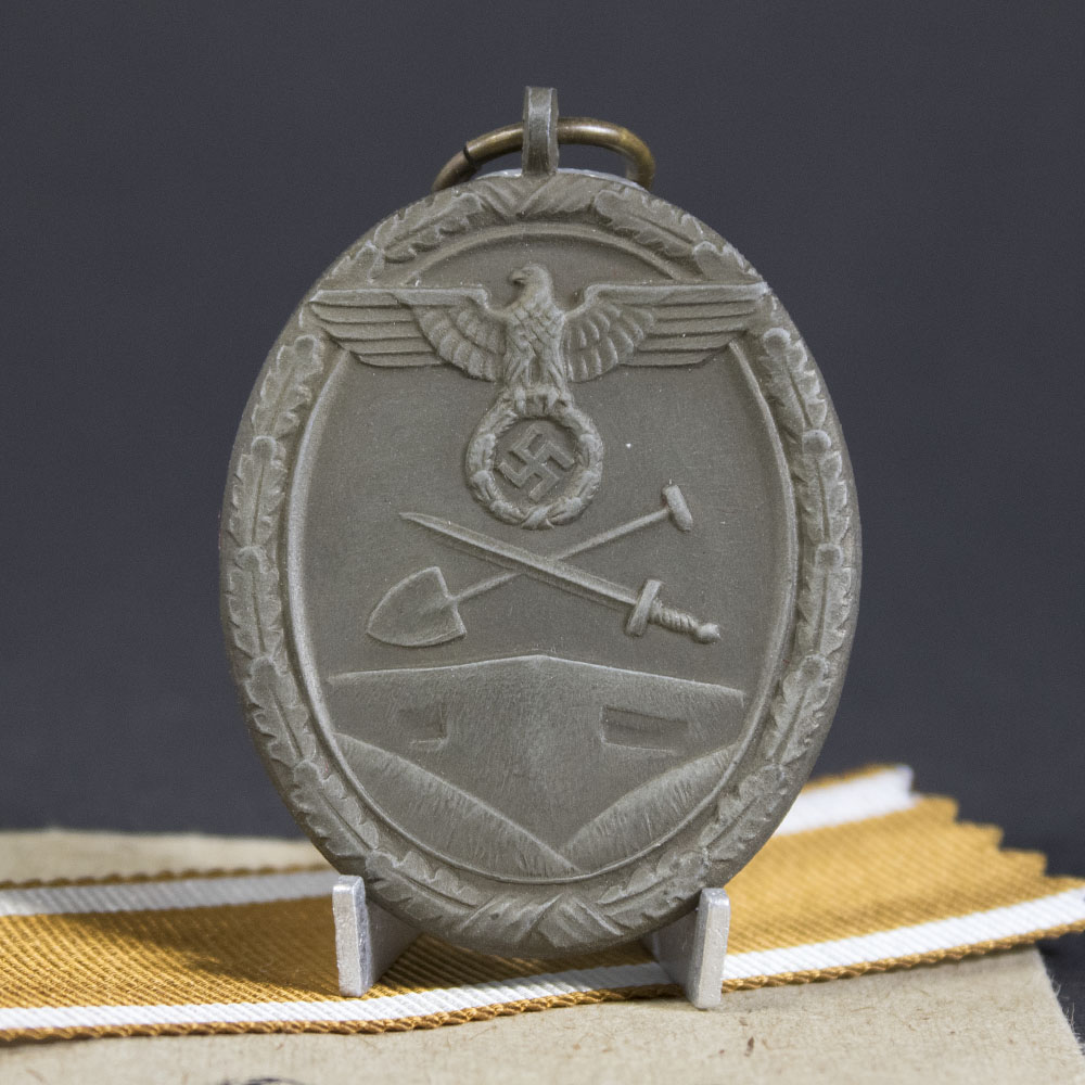 The West Wall Medal (German: Deutsches Schutzwall-Ehrenzeichen) was a military and civil decoration of Nazi Germany, instituted on 2 August 1939. It was originally awarded to individuals who planned, constructed, or contributed to the fortifications along Germany’s western borders, known as the Westwall or the Siegfried Line, between 15 June 1938 and 31 March 1939.