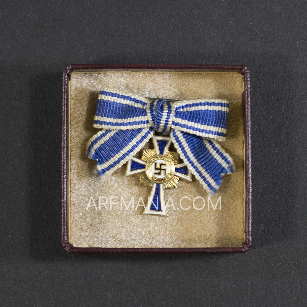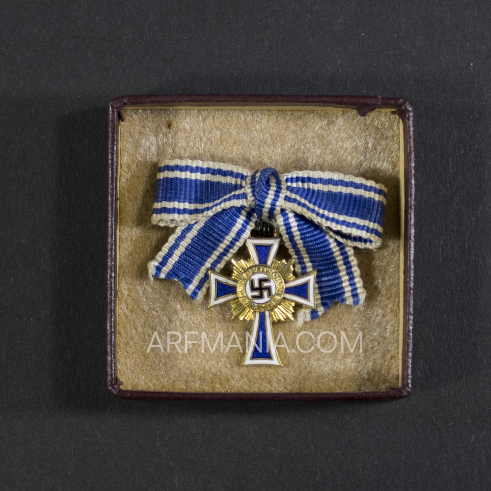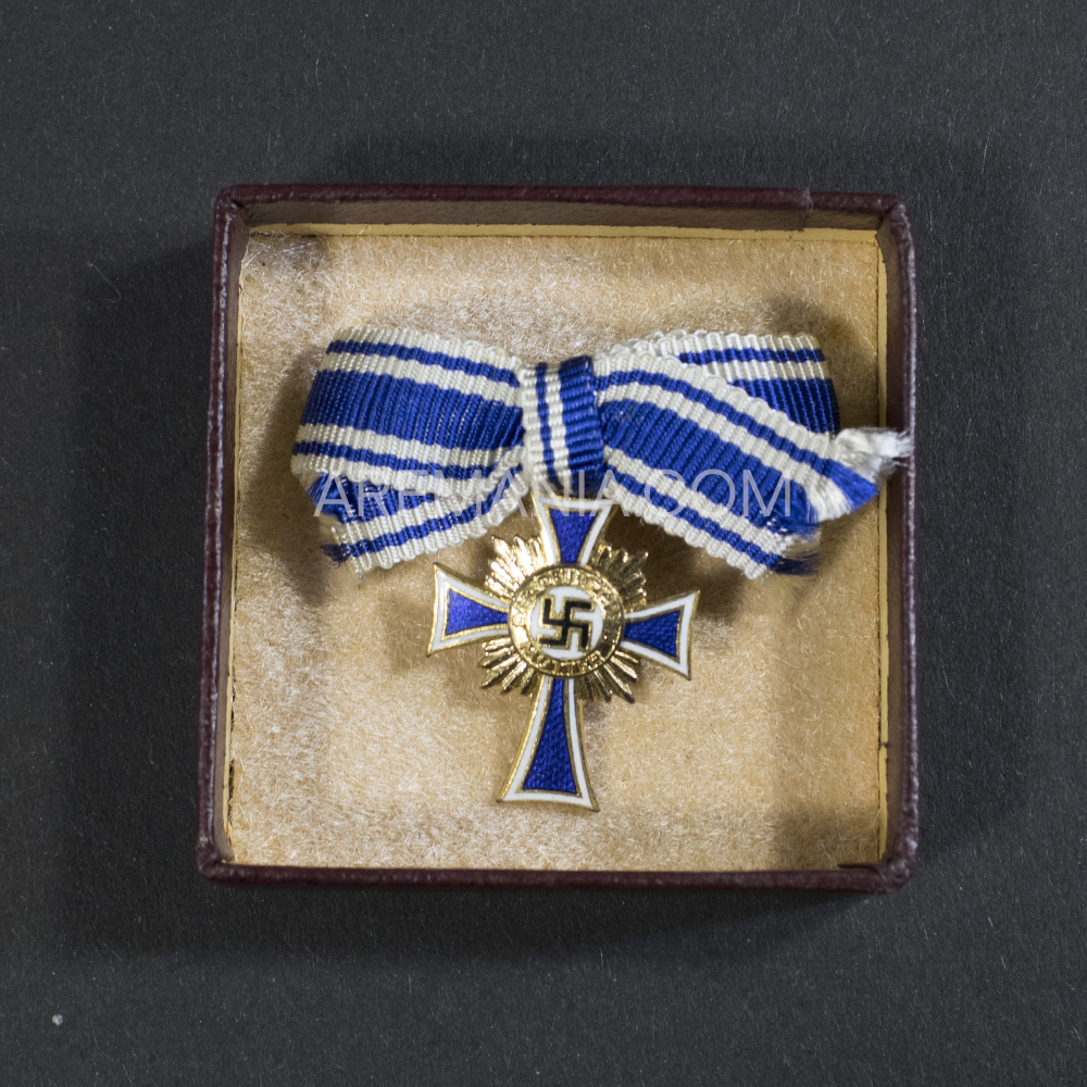 Golden mothers Cross miniature. The very rare larger size (6×6 cm) with LDO logo inside of the lid. The case is marked L/11 (Wilhelm Deumer) on the back.