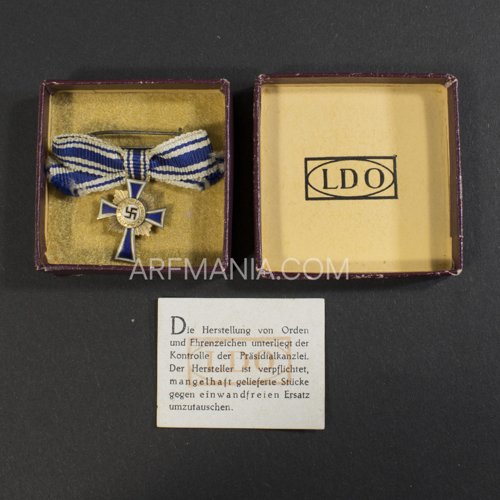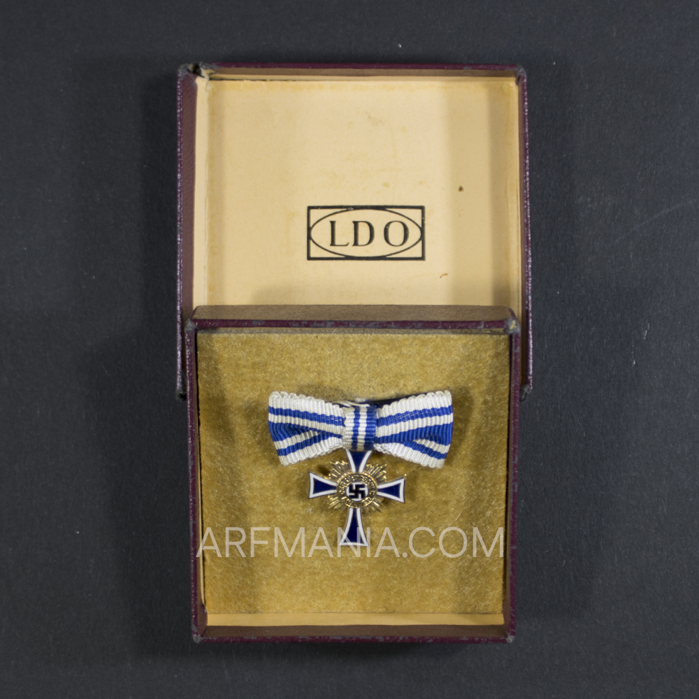Golden mothers Cross miniature with the LDO logo on front of the case. The case is maker marked L/11 (Wilhelm Deumer) on the back.