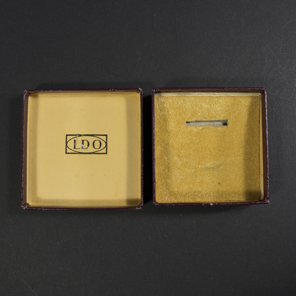 Large and rare (6 x 6cm) with LDO logo inside of the lid and a small cut-out in the inlay for the pin of the miniature